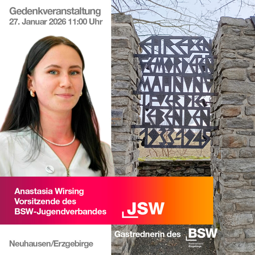 Am Holocaust Gedenktag 2026 waren Vertreter des BSW Kreisverbandes Erzgebirge am Gedenkort Neuhausen OT Dittersbach /Erzgebirge. Als Redner trat der Kreisvorsitzende und Landtagsabgeordnete Ulf Lange auf.