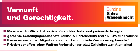 - Die Veranstaltung ist presseöffentlich. Foto- und Filmaufnahmen von Mitwirkenden der Veranstaltung können im Rahmen des Internetauftritts des BSW, in sozialen Netzwerken oder in eigenen Printdokumentationen veröffentlicht werden. Mit der Teilnahme an der Veranstaltung erklären sich die Teilnehmerinnen und Teilnehmer damit einverstanden.